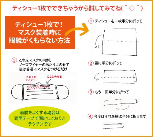 SNSでも、ティッシュを使って、眼鏡の曇り止めの方法が載っていました。
